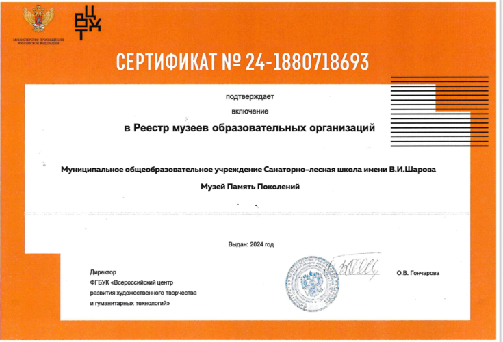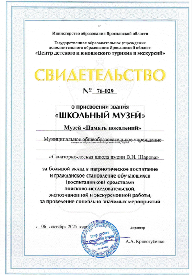 ШКОЛЬНЫЙ МУЗЕЙ "ПАМЯТЬ ПОКОЛЕНИЙ"