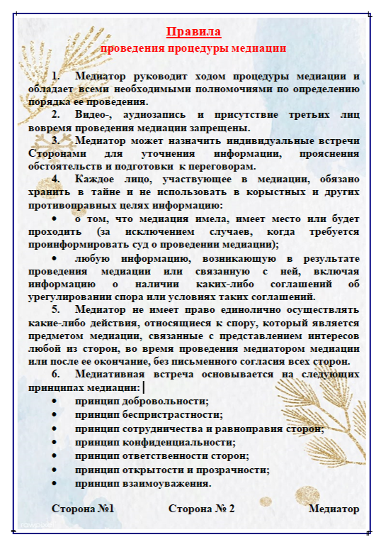 - Постмедиация (повторная встреча по истечение месяца по необходимости)